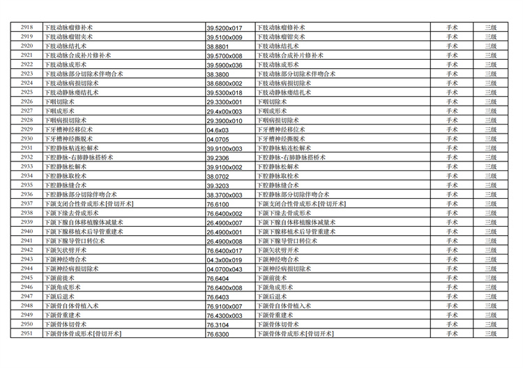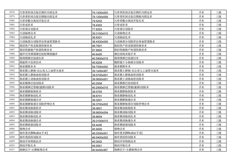 關(guān)于手術(shù)分級(jí)目錄更新的通知